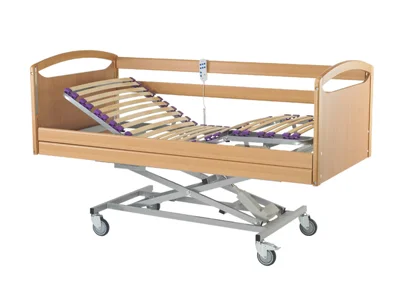 Con carro elevador eléctrico para regular la altura de la cama. También permite la adaptación de barandillas.